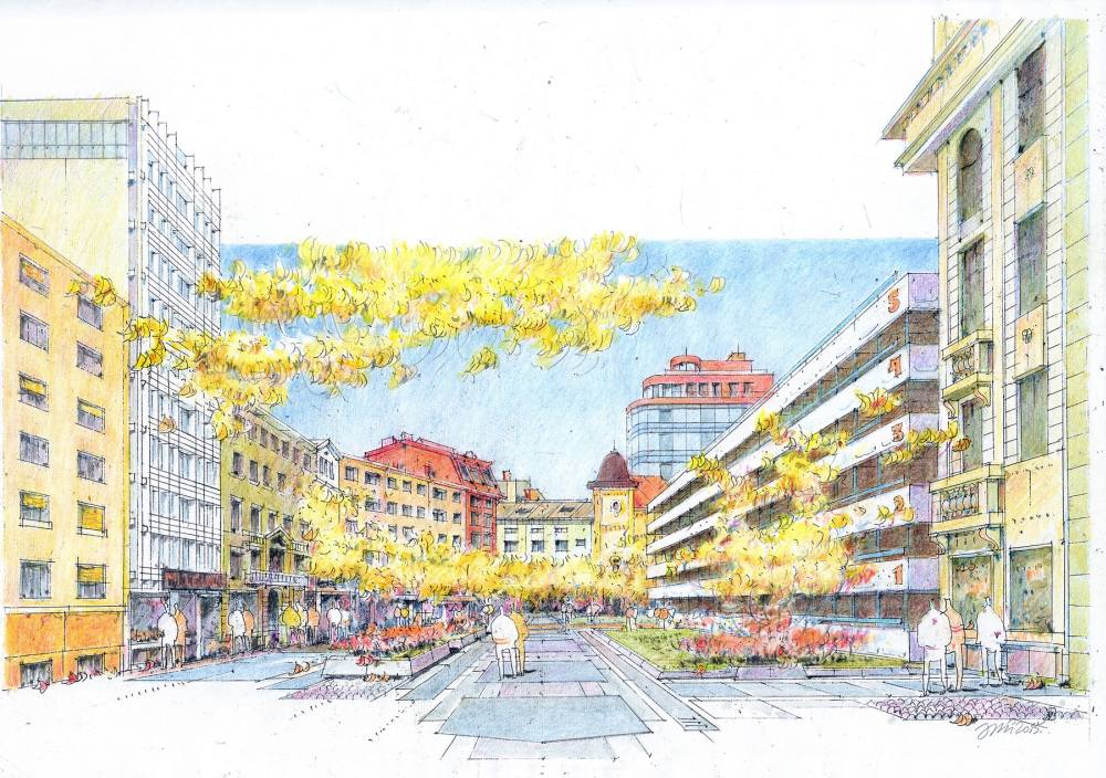 Crteže i perspektive za idejno rešenje popločavanja Obilićevog venca uradio je arhitekta Branislav Jovin, isti arhitekta koji je radio Knez Mihailovu ulicu.