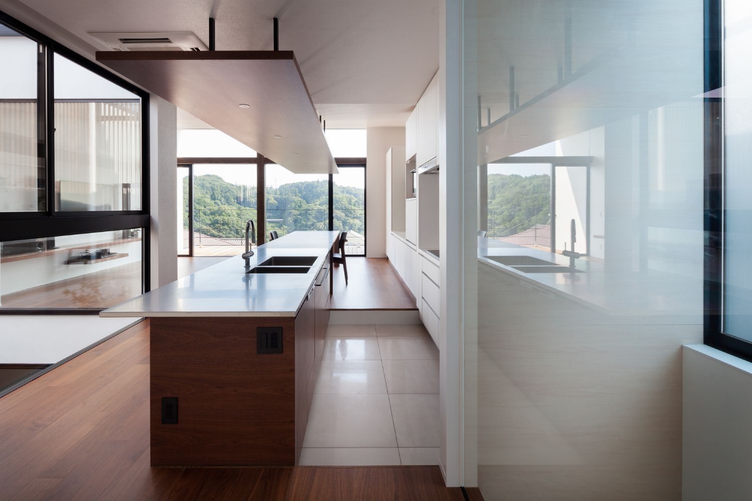 Studio LEVEL architects potpisuje projekat kuće zvane Kamakura, u istoimenom japanskom gradu južno od Tokija, koja osim ulazne zone, na beloj fasadi ne postoji nijedan otvor, kao niti jedan arhitektonski detalj. Objekat od 116 metara kvadratnih okarakterisan je potpuno belom jednoličnom i zatvorenom uličnom fasadom, dok se svojim zadnjim delom otvara ka okolnim brdima na jug.