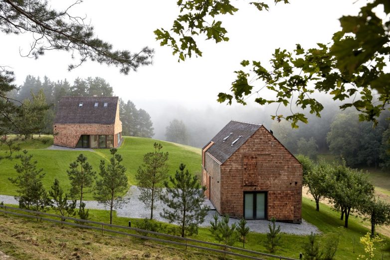 Objekti odišu smirenom arhitekturom, gde je glavni volumen integrisan u brdo i delimično ukopan u njega.