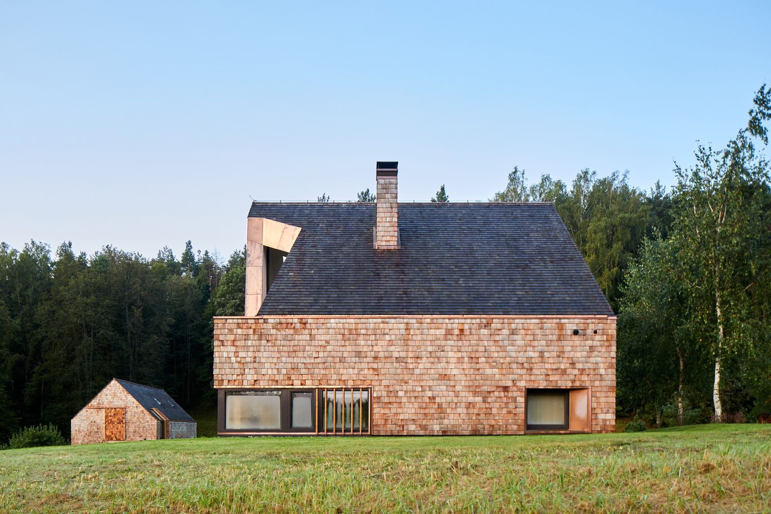 Fasade i krovovi objekta izvedeni od šindre napravljene od kedrovine i ovaj materijal ne samo što je tradicionalan, već je i pouzdan i održiv. Pritom i kuća je dobila ime po drvetu kedra.