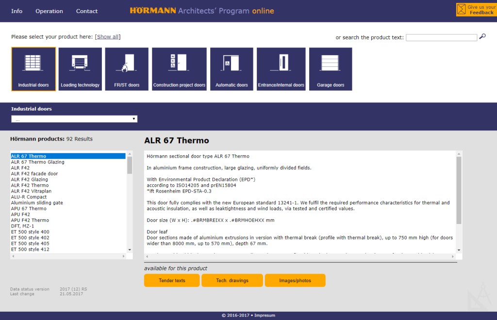 Kreirajte, sa samo nekoliko klikova mišem, individualne tenderske opise i koristite crteže proizvoda kompanije Hörmann.