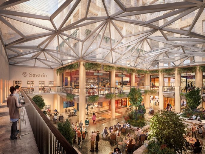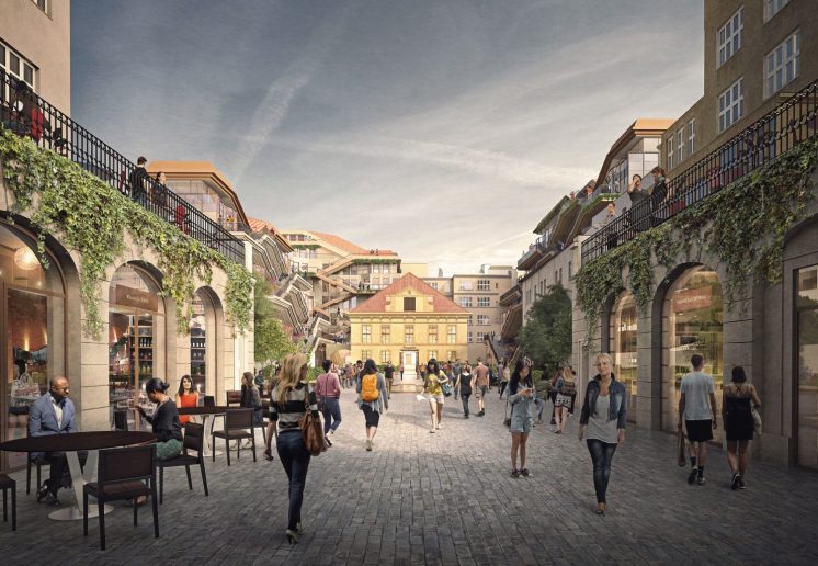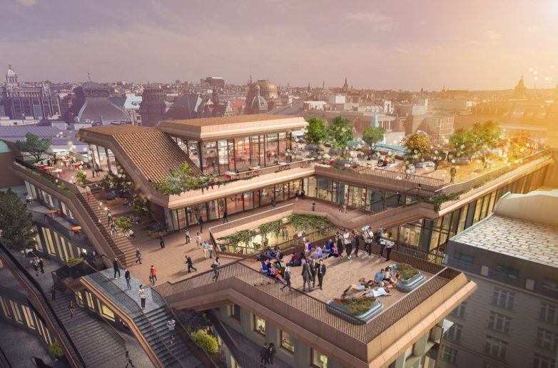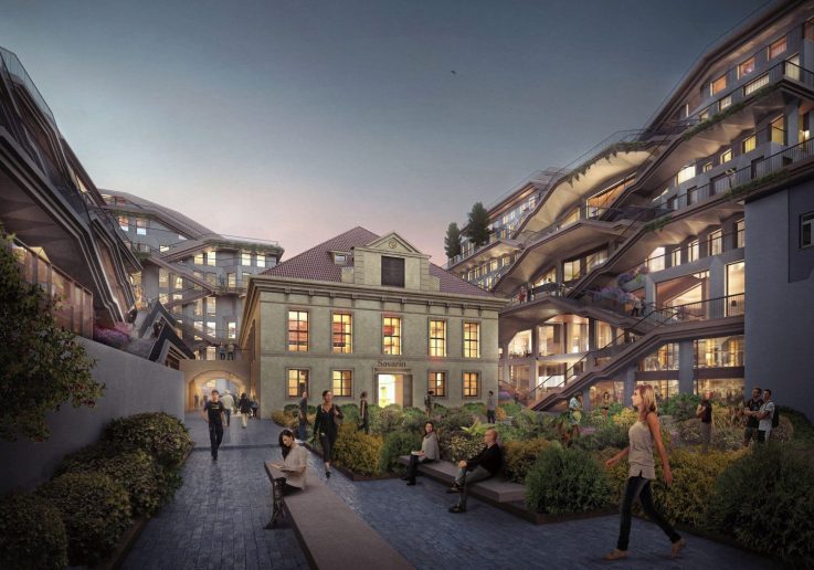 U srcu kompleksa naći će se centralni trg, do kojeg će se pristupati kroz pasaže iz četiri okolne ulice. Oko njega će se nizati novi komercijalni i kancelarijski blokovi koji se, kako rastu u visinu, postepeno povlače unazad, formirajući kaskadne terase. Planirano je bogato ozelenjavanje, sa baštama i krovnim vrtovima, što će dodatno ublažiti prelaz između istorijskog jezgra i savremene dogradnje.