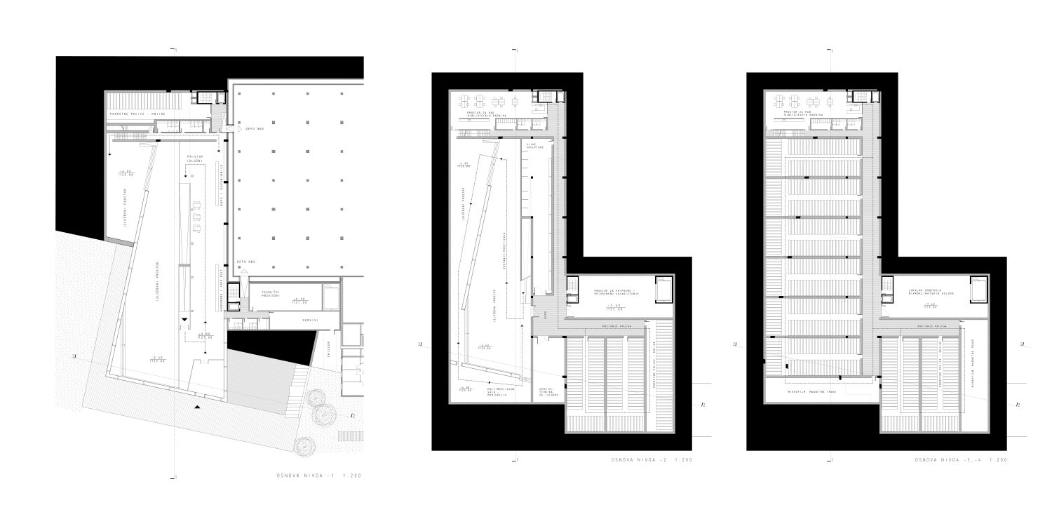 Administrativni deo je pozicioniran u produžetku postojećeg administrativnog trakta, koji horizontalnim i vertikalnim komunikacijama (stepeništa, rampe, teretni lift/platforma) povezuje sve nove sadržaje sa postojećim objektom.