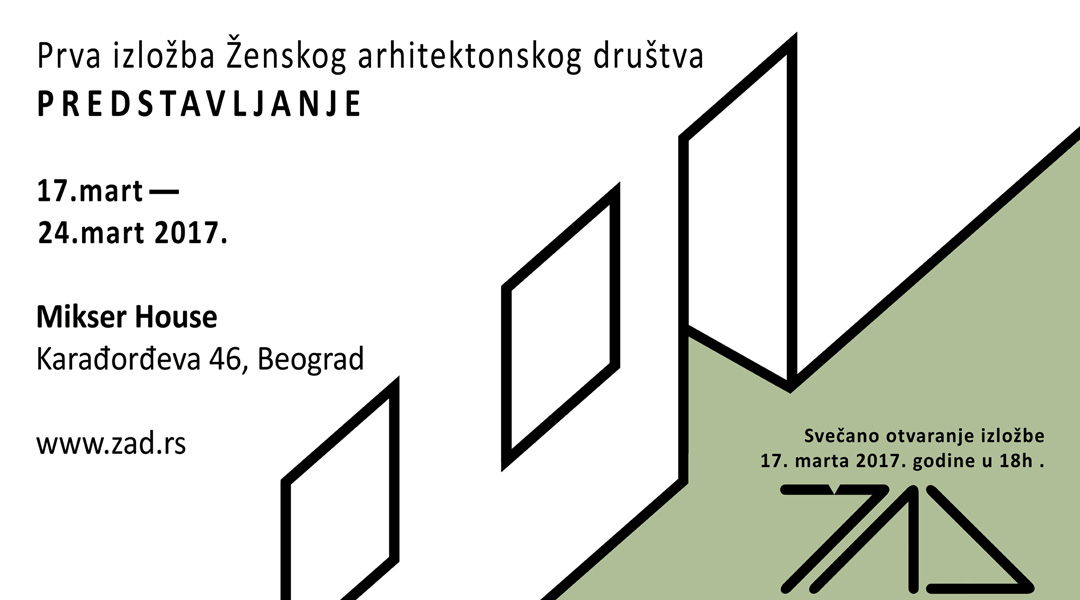 U petak 17. marta svečano je otvorena prva izložba Ženskog arhitektonskog društva (ŽAD) u Mikser hausu. Javnosti se prezentovalo 50 uglednih žena arhitekata, na panoima sa projektima, naučnim radovima i drugim profesionalnim aktivnostima, koje će za javnost biti prezentovani do 24. marta.