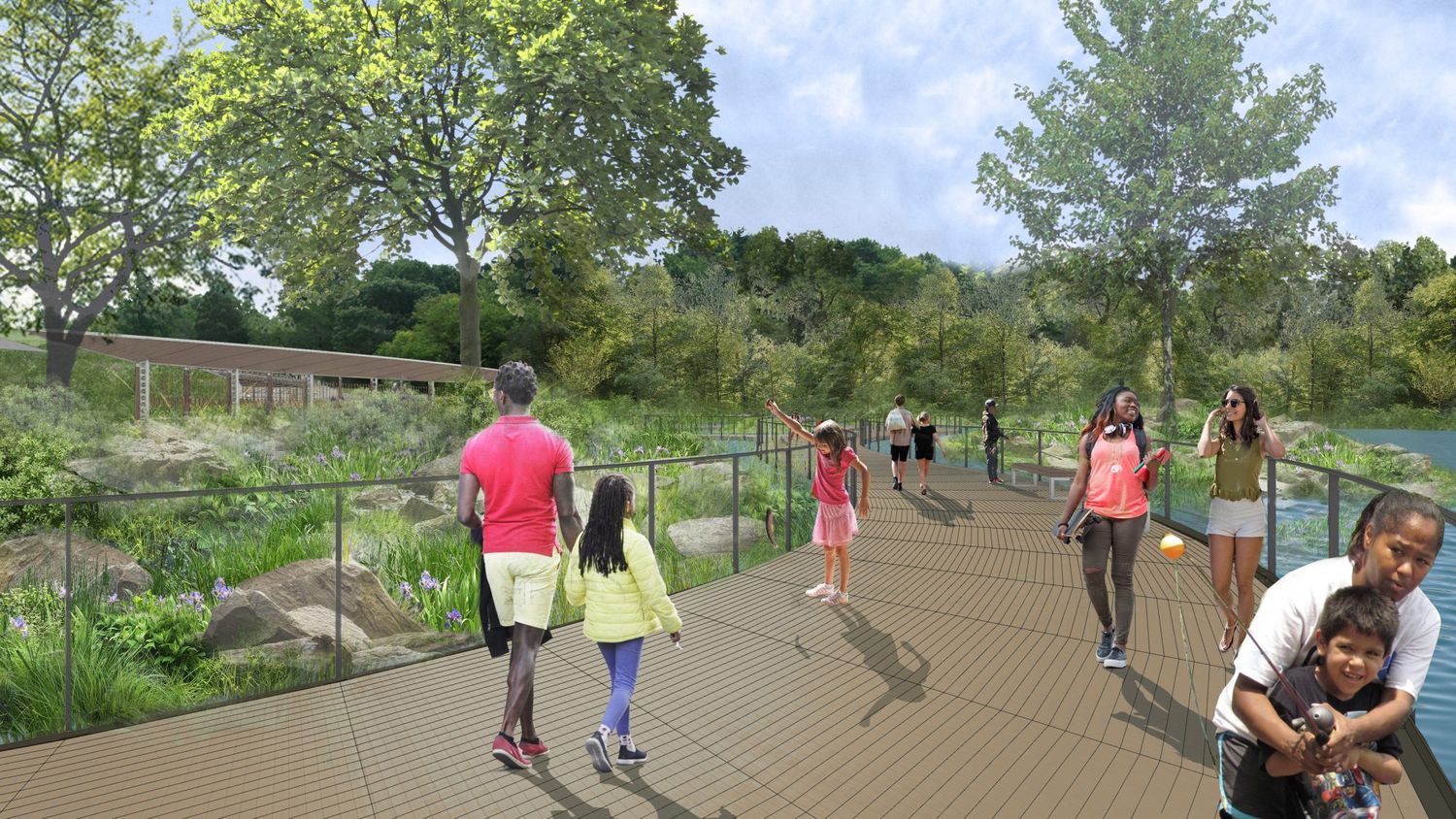 Kako bi se posetioci ponovo povezali s vodom, biće uspostavljeno krivudavo šetalište preko niza manjih ostrvaca i nove močvare.