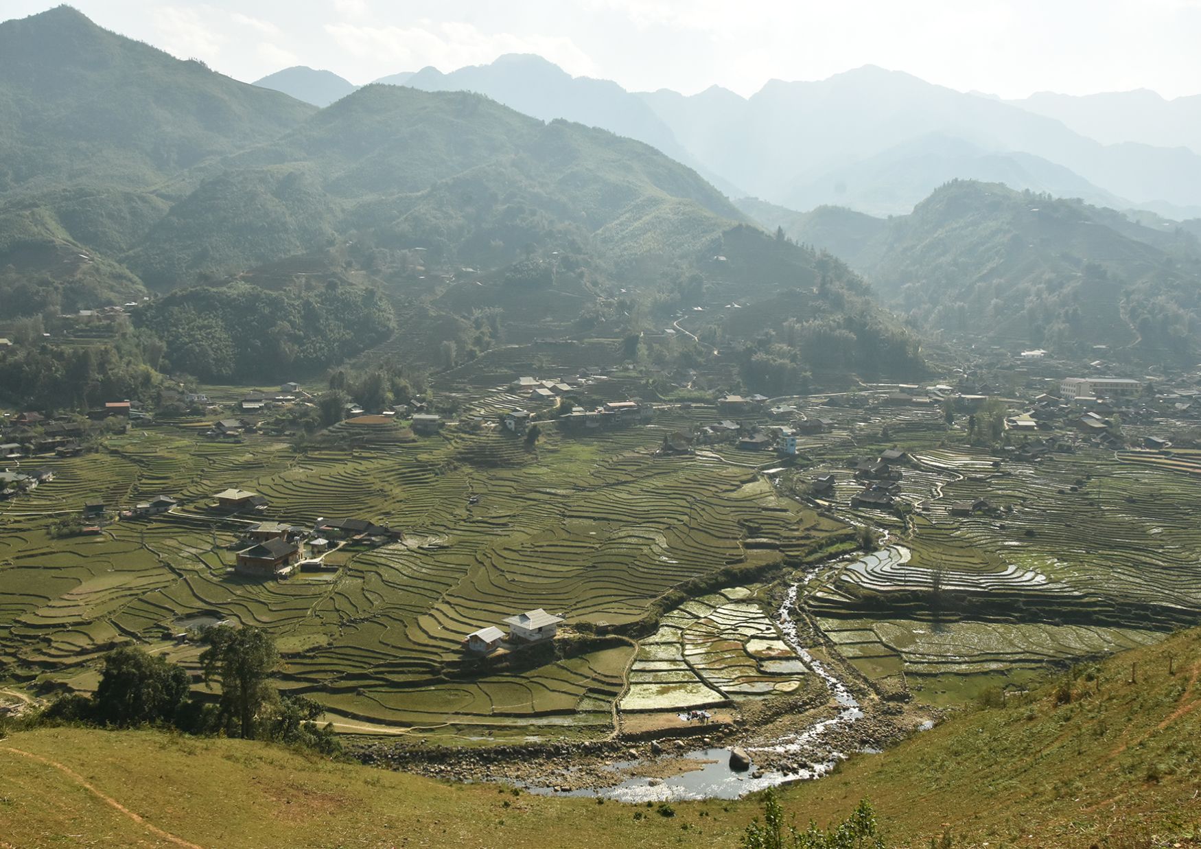 Dok evropska sela blede, ovo vijetnamsko vrvi od ljudi, naročito od dece. Možda to nije slučajnost jer je ceo prizor seoske idile smešten na rižinim terasama u planinskom vencu Hoang Lien Son, mestu ubrzanog razvoja turizma, u kojem žive nacionalne manjine Vijetnama.