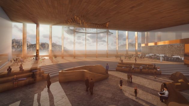 Objekat od 600.000 kvadratnih metara inspirisan je okolnim planinama, aluvijalnim ravnima i lednicima, koji zajedno kroje pejzaž ove fascinantne lokacije. Zato će objekti oko centralne kičme biti organizovani tako da izgledaju kao glečeri koji cepaju zemljište oko sebe.