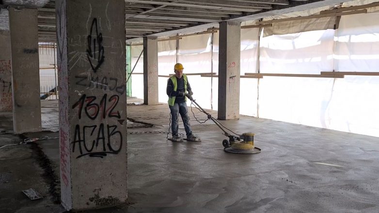 Ovih dana najaktivniji su izvođači nivelišućih slojeva na međuspratnim pločama od devetog do trinaestog sprata.