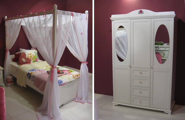 U sobama za devojčice nezaobilazna jarka lila boja ili pak baldahim oko kreveta.  Zaobljene ivice nameštaja, poneki cvet na belom nameštaju deo su bajkovite romantike za male princeze.