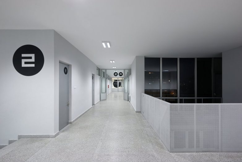 Na preseku dva krila objekta novoformiran je vertikalni prodor kroz postojeću i novoprojektovanu strukturu škole. Na taj način dobijen je atrijumski prostor sa oslobođenim liftovskim oknom, koje omogućava vertikalnu komunikaciju kroz celokupnu strukturu objekta (podrum, prizemlje, prvi i drugi sprat), dodatni prosvetljaj primarnih horizontalnih komunikacija u objektu i povezivanje starog i novog dela objekta.