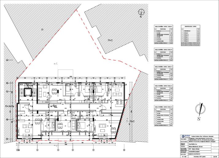Novoprojektovani objekat je po karakteru dvostrano uzidan, spratnosti 2Po+P+3+Pk, i postavljen je na parceli prema uslovima horizontalne i vertikalne regulacije.