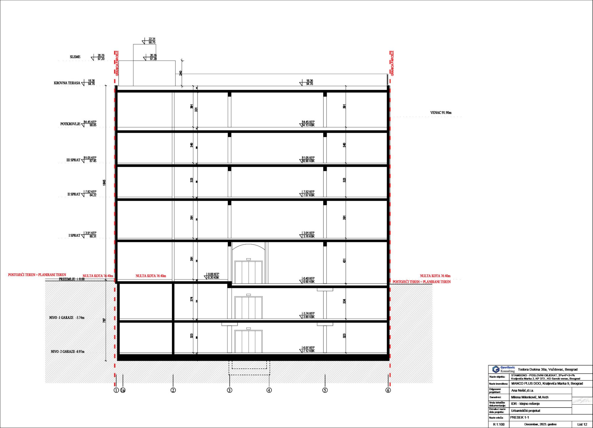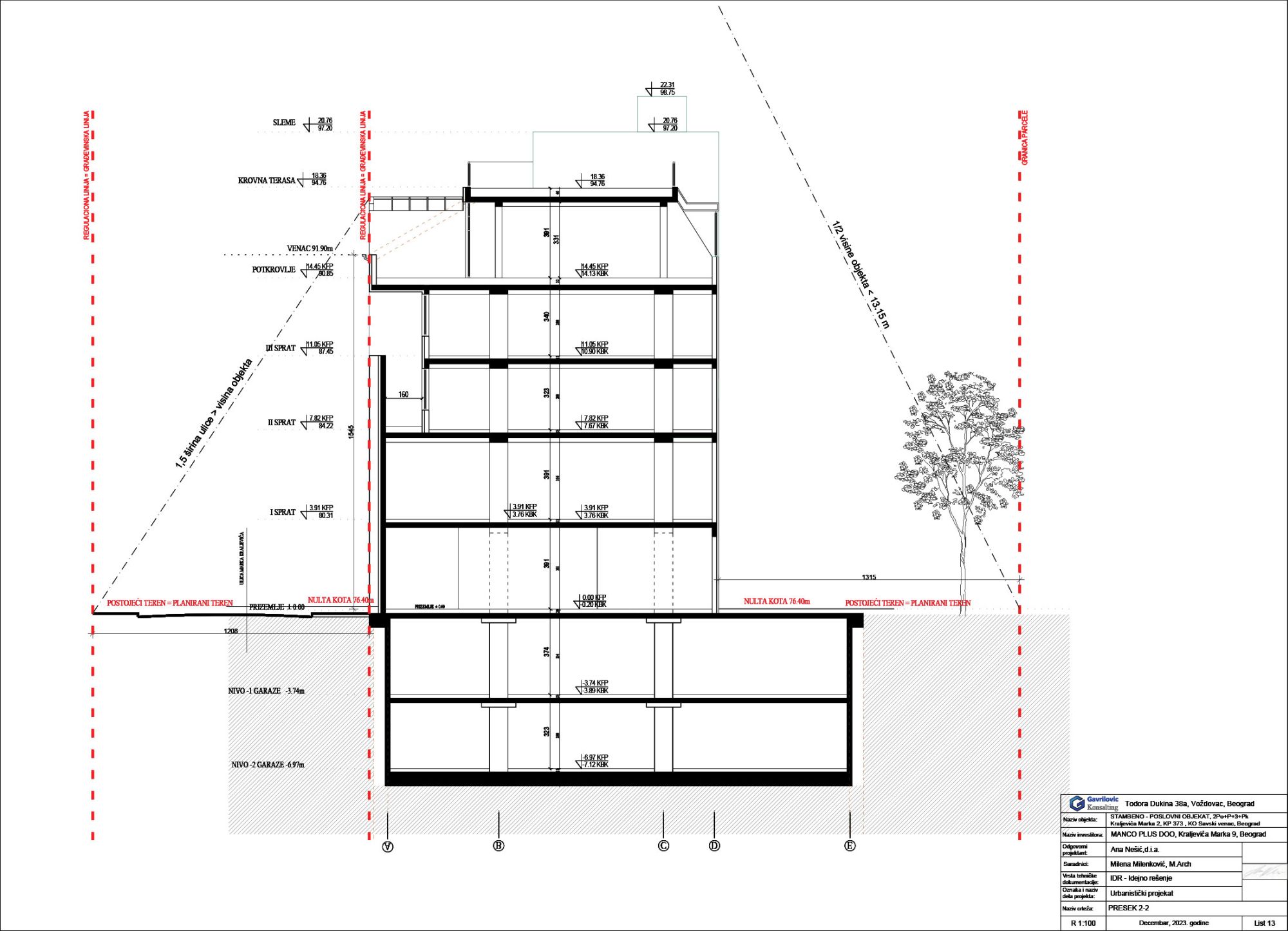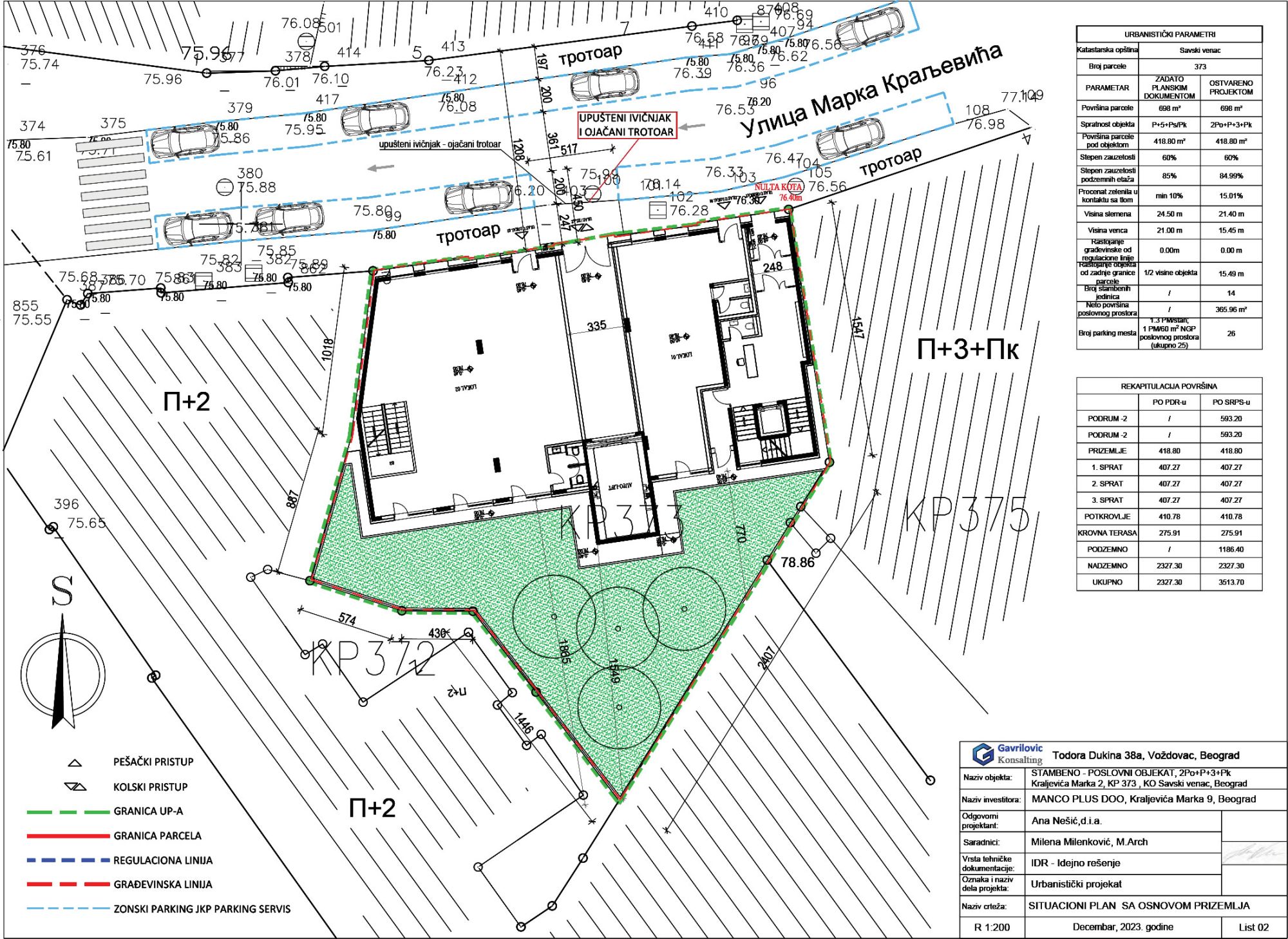 Kako se navodi u UP-u, za potrebe investitora urađen je projekat rekonstrukcije, adaptacije i nadgradnje stambeno-poslovnog objekta na adresi Kraljevića Marka 2, u svemu prema Projektnom zadatku investitora.