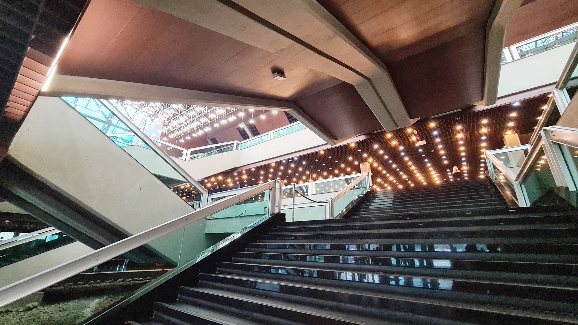 “Stilizovana tehnokratska mapa sveta, lebdeći galerijski prostori, smena sivih betonskih i zelenih površina ostaju ključni akcenat enterijera. Čuvena Velika, odnosno Plava koncertna dvorana, biće renovirana i prilagođena savremenim zahtevima tržišta uz očuvanje kolorita.”