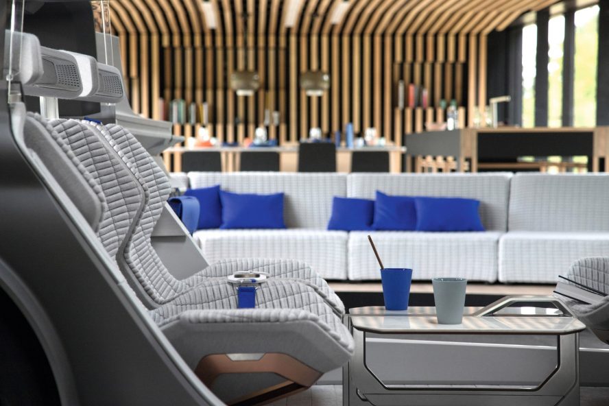 Četiri sedišta u automobilu Symbioz su zapravo udobne fotelje koje se mogu okrenuti jedne prema drugima.