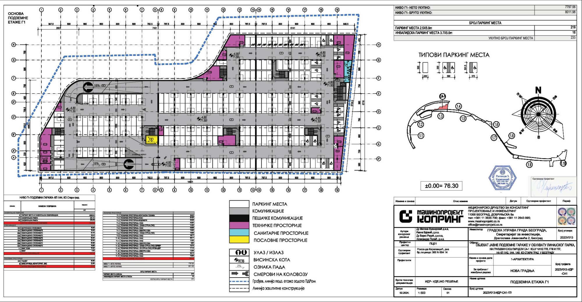 Objekat je projektovan kao niz prostora za potrebe parkiranja motornih vozila i parkiranje bicikala, sa elektro-punjačima i sl.