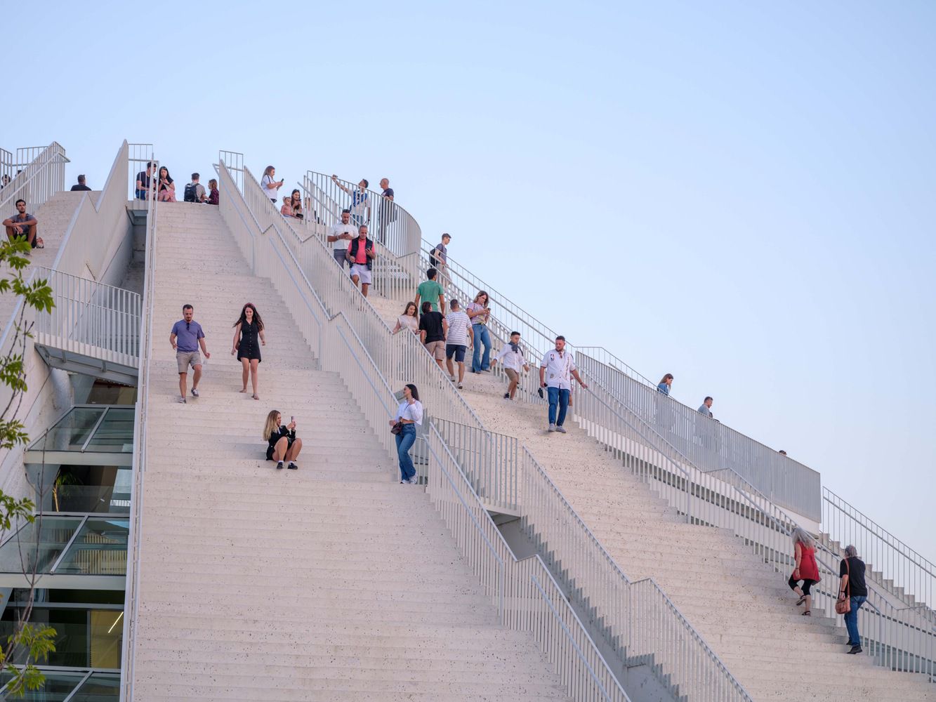 Stepenice koje se uzdižu uz nagnute strane Piramide sada omogućavaju ljudima svih uzrasta da se popnu na vrh zgrade.