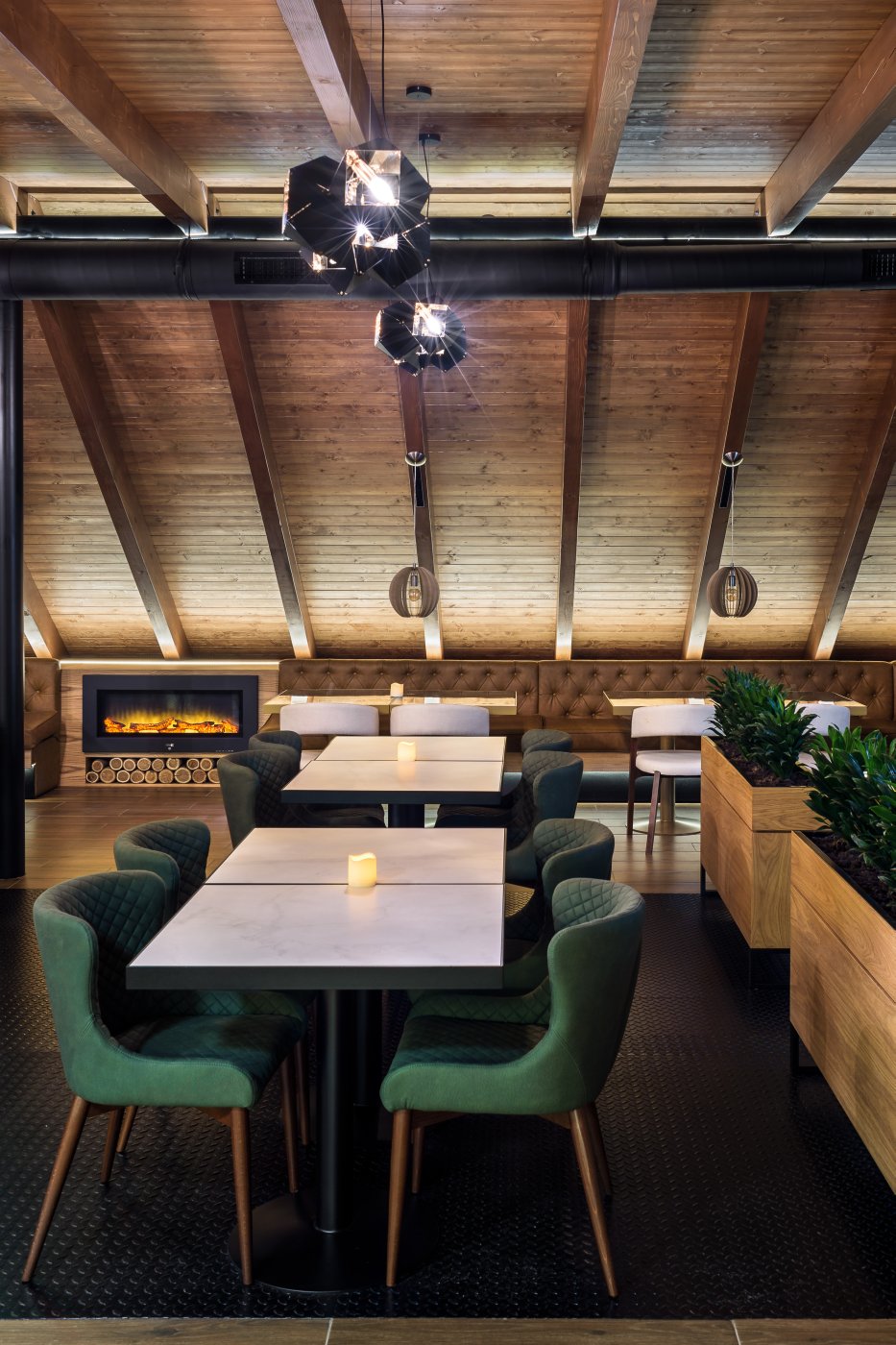 Dok arhitektura objekta nagoveštava ambijente koje će korisnik otkriti unutra, enterijer restorana igra značajnu ulogu u ukupnom efektu spoljašnjeg dizajna.