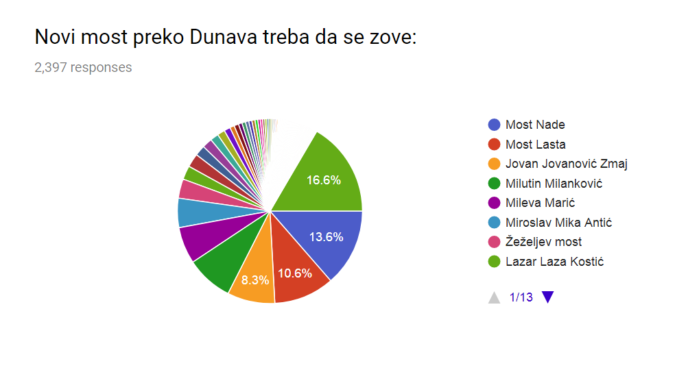 Prema našoj anketi, posetiocima se najviše svideo predlog Most Nade koji je osvojio 13,6% glasova. Iza ovog predloga stoji fondacija Novi Sad 2021 koja ima programski koncept baziran na četiri mosta: Duga, Sloboda, Novi most (prema Ribarcu) i Most Nade.