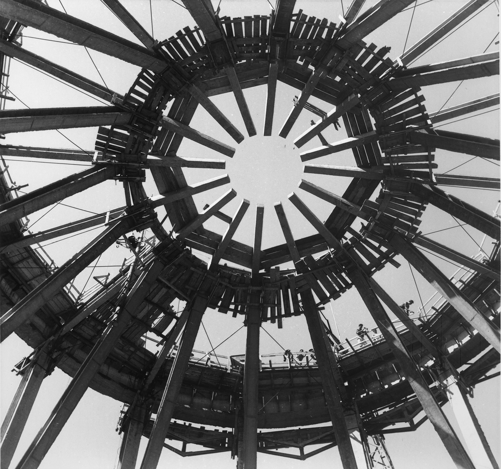 Branko Žeželj ispred makete krovne konstrukcije; Izvor: Crno-beli Beograd
