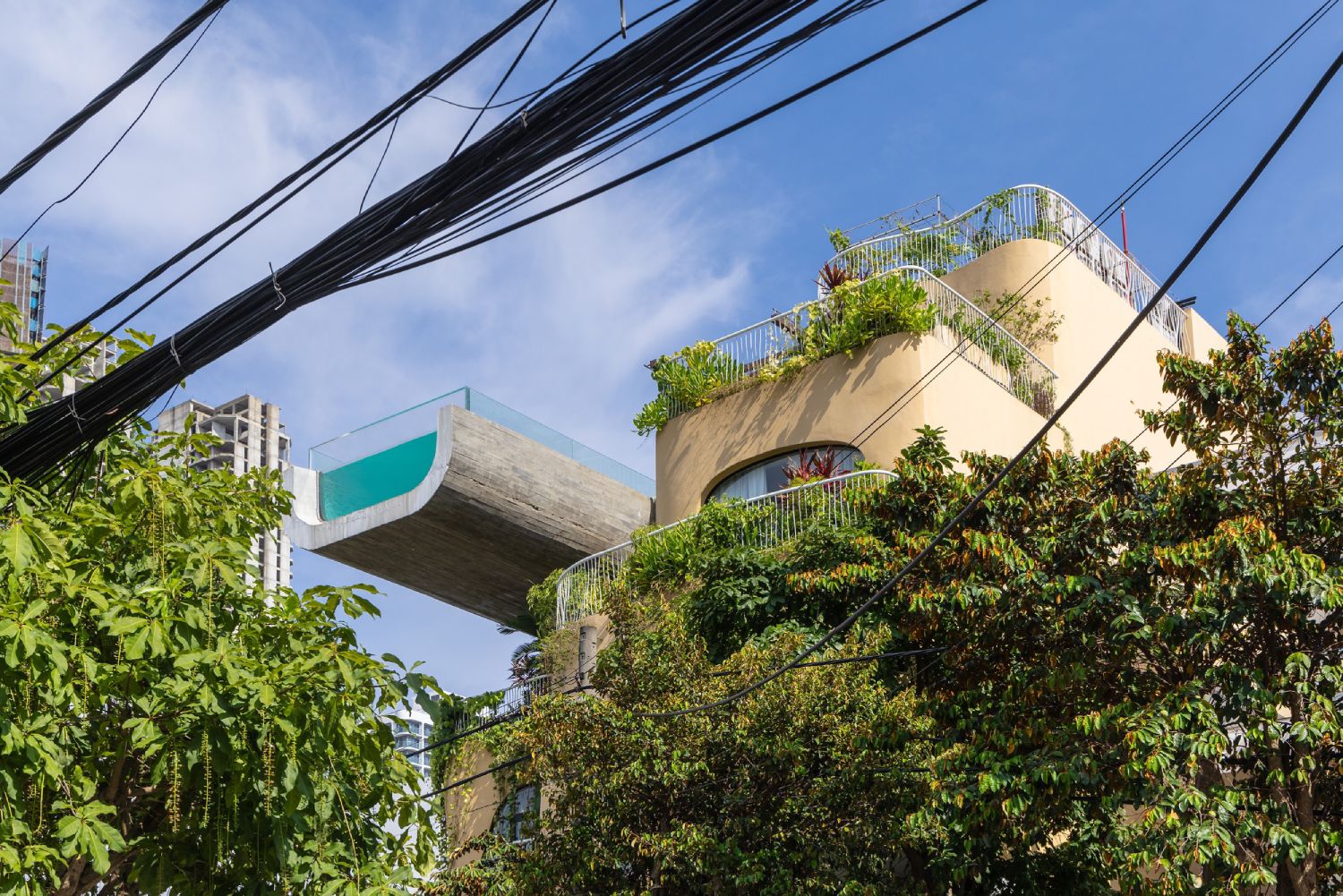 Na samom vrhu zgrade nalazi se bazen sa konzolnim prepustom dugim šest metara, koji lebdi iznad ulice i odmah privlači pažnju prolaznika. Njegova staklena prednja strana od specijalnih akrilnih panela otvara široke poglede ka obali i stvara utisak bestežinskog kupanja između neba i mora.