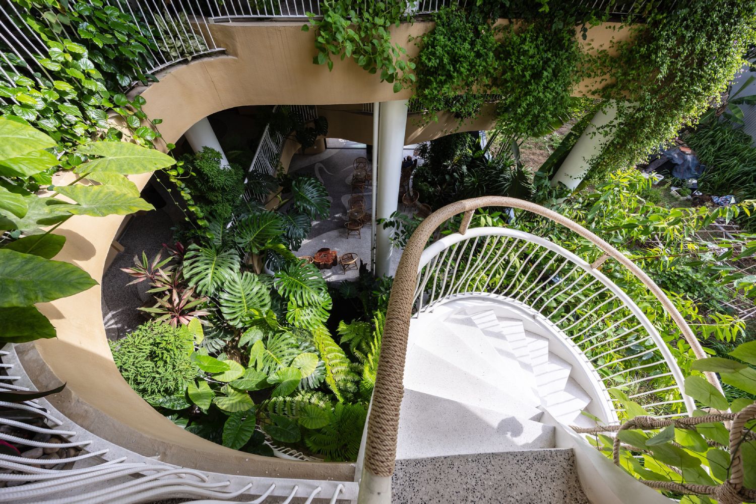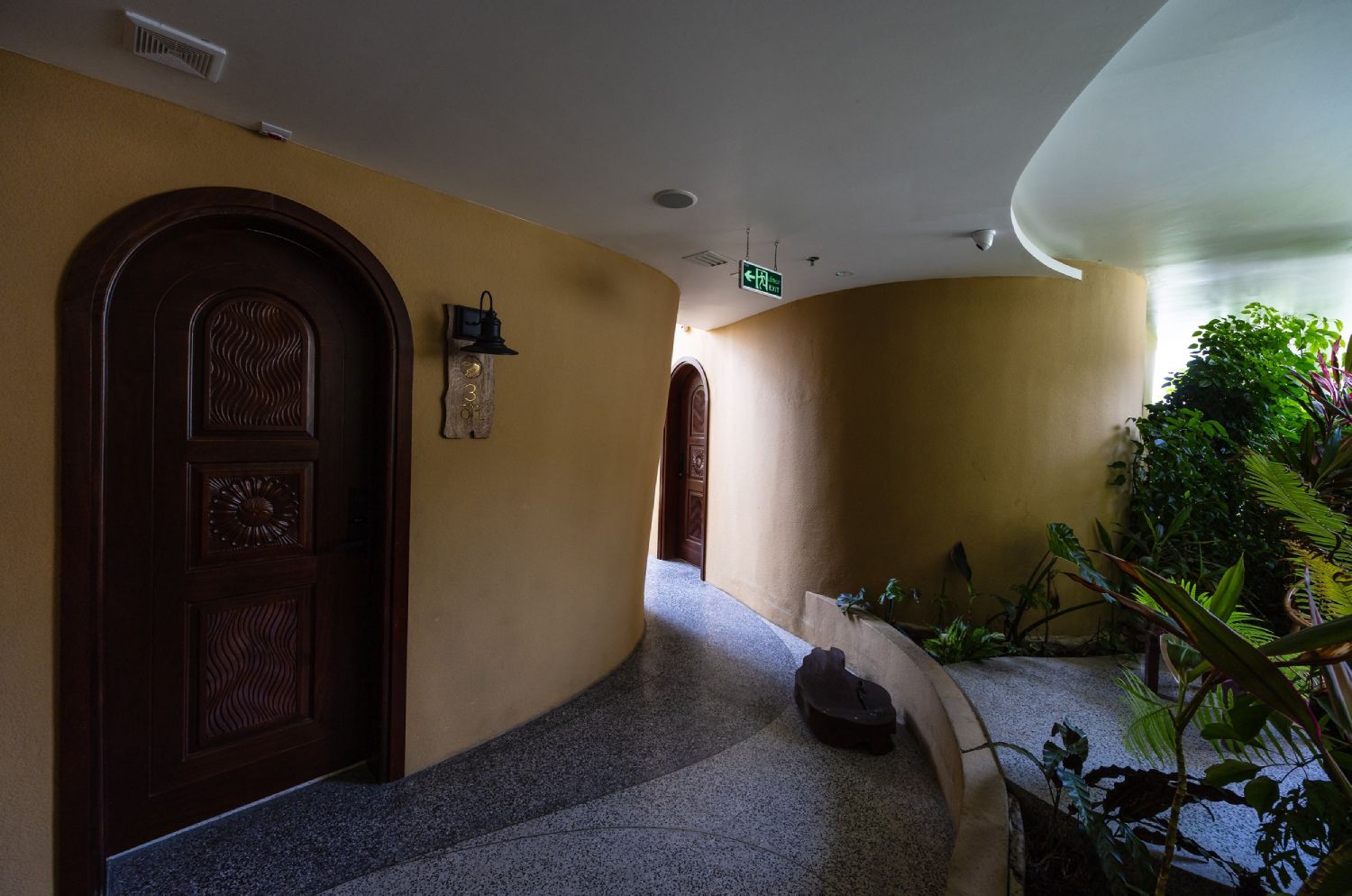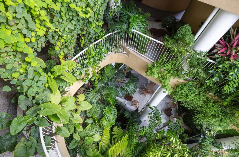 Smaragdni tepisi i vertikalne bašte prelivaju se između spratova, stvarajući osećaj blizine prirode i pozivajući goste da istražuju okruženje dok se kreću kroz objekat.