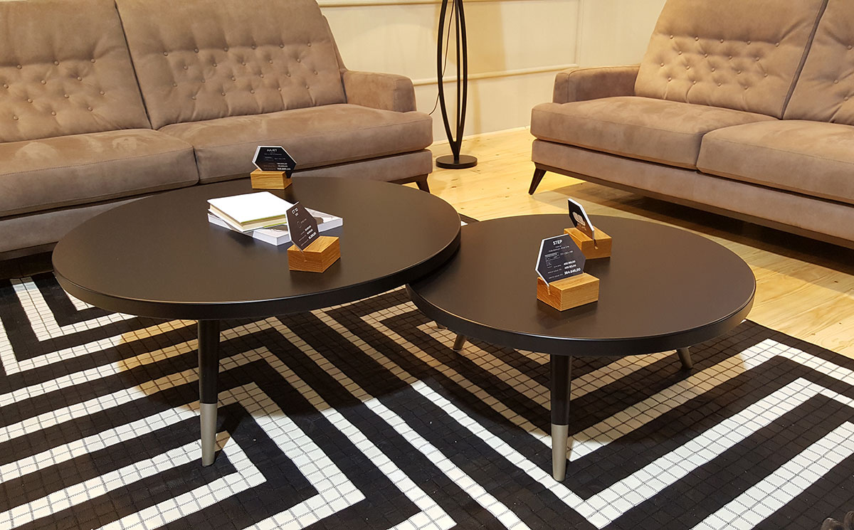 Priozvođač iz Bosne i Hercegovine Gazzda predstavio je klub sto Fawn Coffe Table u dimenzijama 90×90 cm H=30 cm. Sto je izveden od hrastove kostrukcije preko koje je postavljeno staklo od 5 mm u crnoj ili plavoj boji. Zanimljiv detalj su rastegljive pamučne trake koje su isprepletene ispod ploče stola.