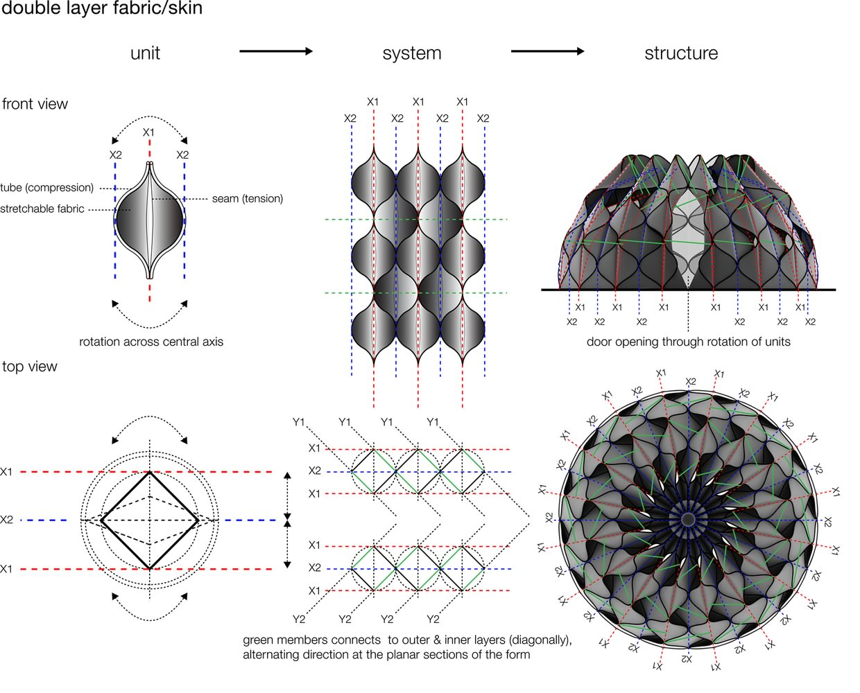 Zbog ćelijske prirode ove strukture, pojedini segmenti sistema mogu se otvoriti kako bi se kreirala vrata ili kako bi se omogućila cirkulacija vazduha. Tokom zime, utočište se može potpuno zatvoriti kako bi se održala temperatura u šatoru.