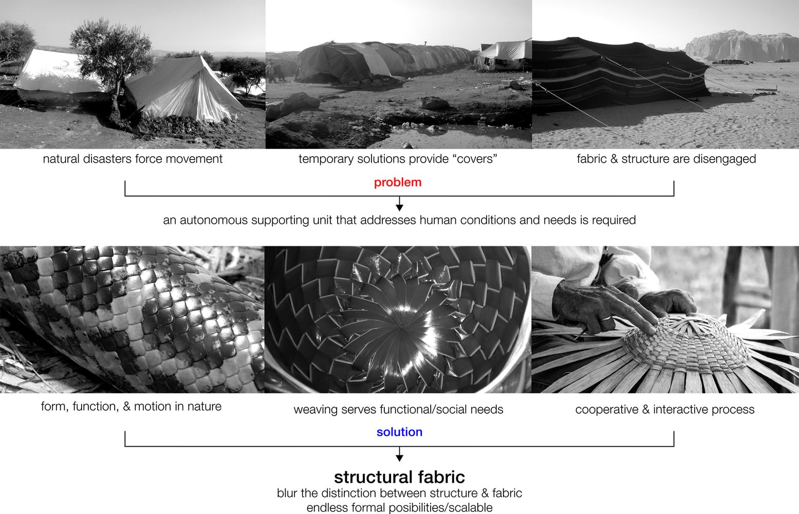 Bilo da se radi o prostorima zahvaćenim ratom ili prirodnim katastrofama, talasi izbeglica zahvatili su ceo svet. Ovi nemili događaji inspirisali su dizajnera Abeer Seikalyija da napravi utočište pod imenom Weaving a Home (prev. Tkanje doma) za koje je još 2013. godine dobio Lexus Design Award. Da je nagrada otišla u prave ruke, govori podatak da se ovi rasklopivi šatori uveliko koriste širom sveta.