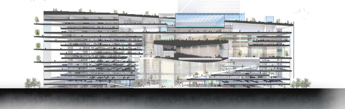 Predlog japanske arhitektonske firme Nikken Sekkei podrazumeva kreiranje jedinstvenog volumena s sadržinskim programom koji uključuje muzej, centar za posetioce, kao i medicinski i sportski centar koji imaju direktan pristup poslovnom delu objekta.