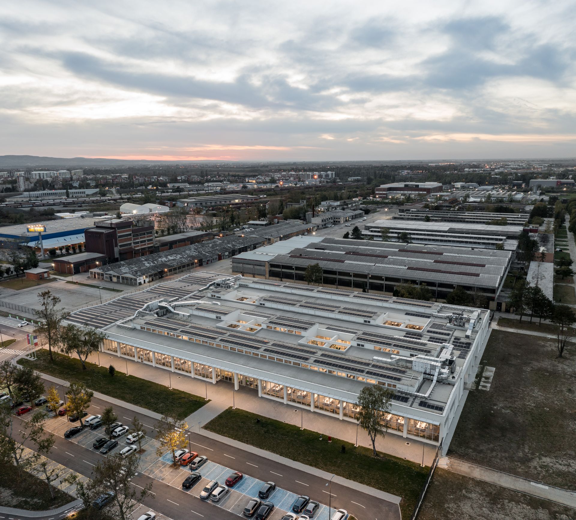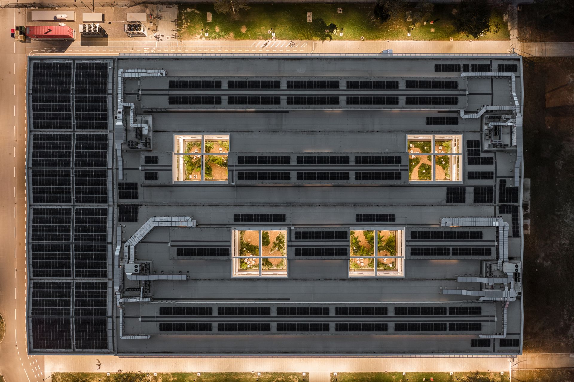 Zelena arhitektura se česta navodi kao floskula u našoj struci i ne podrazumeva samo veće prisustvo parkovskih i drugih biljnih struktura, već i energetsku održivost, koja takođe utiče na ekološki standard. U te svrhe, autorski tim Zabriskie je imao još jedan delikatan zadatak, a to je projektovanje mini solarne elektrane na krovu hale, snage pola megavata, koja se napaja sunčevom svetlošću preko 1.500 m² solarnih panela.