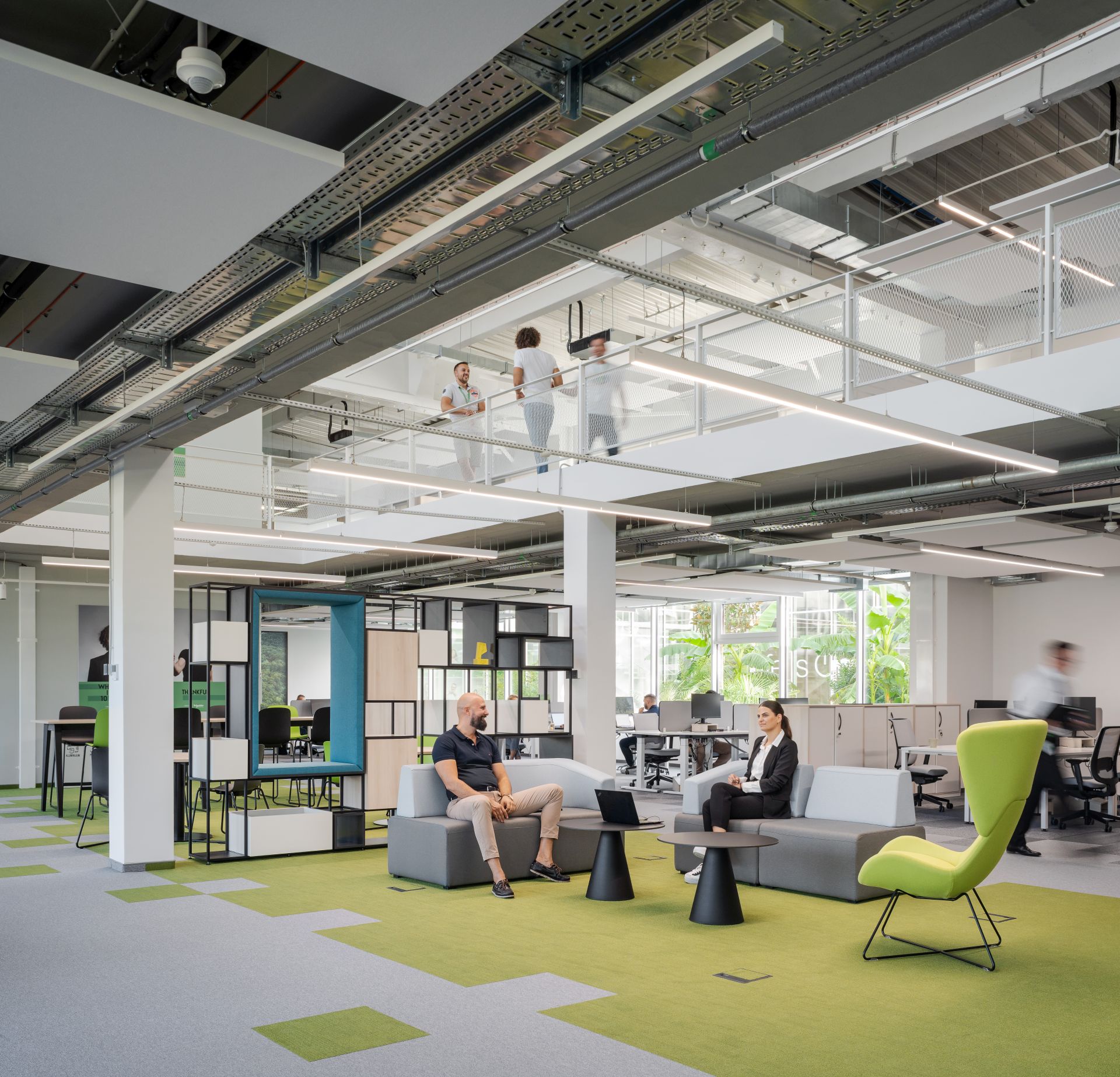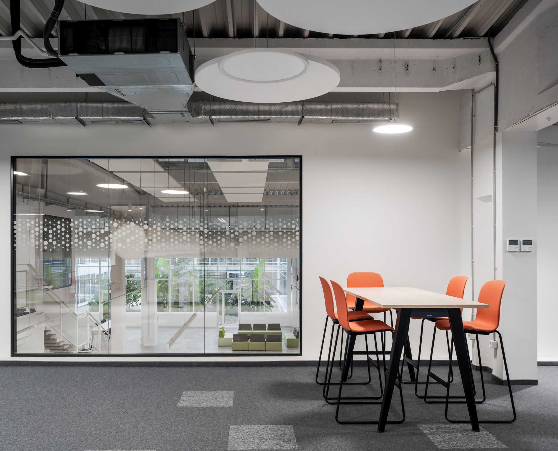 Kako se dalje ulazi u hub, primećuje se da su mnoge prostorne strukture (etaže, komunikacije itd.) stare fabrike sačuvane, ali prenamenovane, pa su radni prostori potpuno otvoreni. Boje i materijali su posebni birani, kako bi boravak u prostoru bio što prijatniji, a održavanje što lakše i efikasnije.