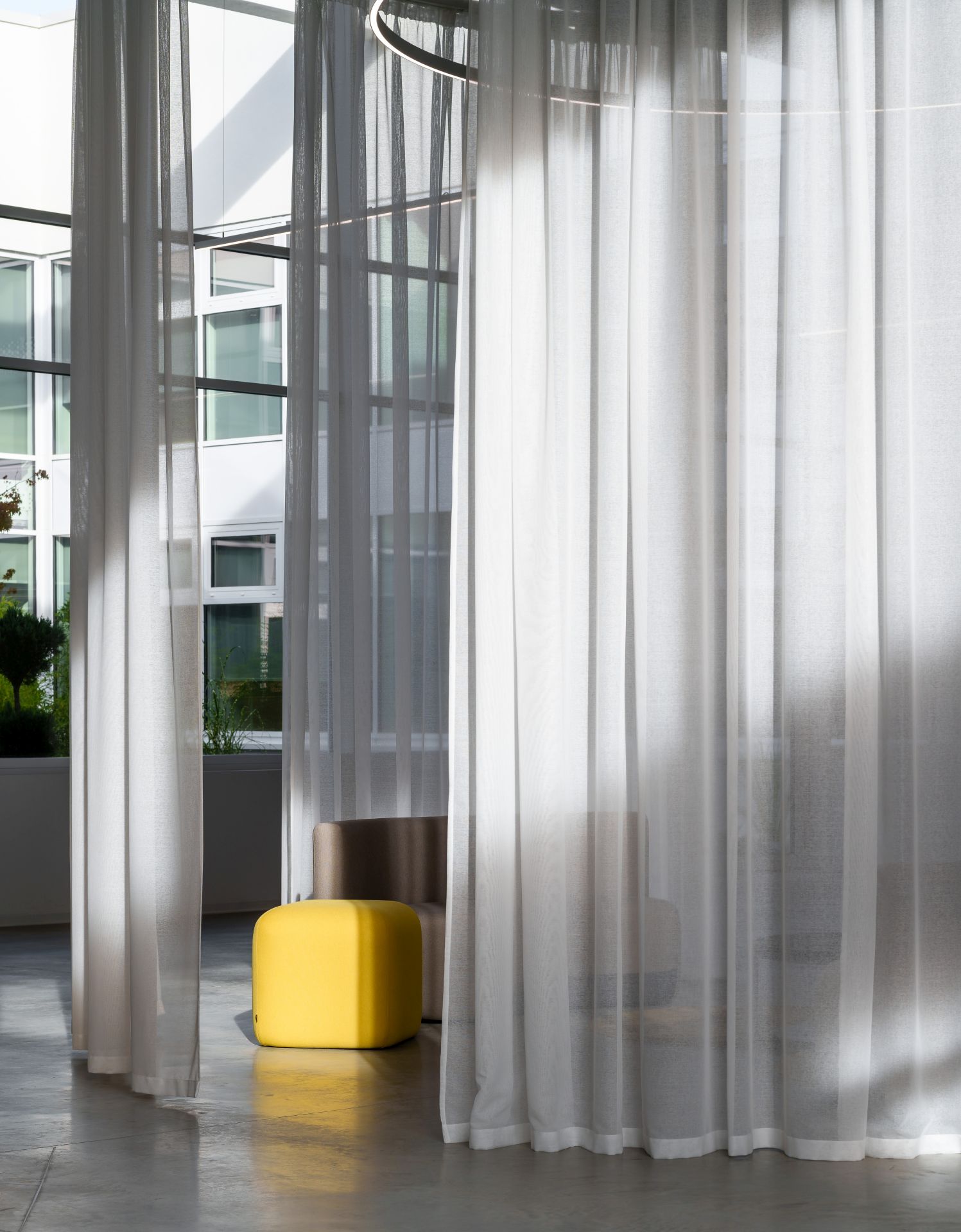 Za početak, kada se uđe u središnji prostor hale, primećuje se da je on ostao slobodan u punoj visini, što više rasterećen od nepotrebnih elemenata, ali dodatno oplemenjen mikro ambijentalnim celinama nameštaja, sa dugačkim, prozirnim zavesama, što stvara utisak da se nalazite u prostoru unutrašnjeg trga.