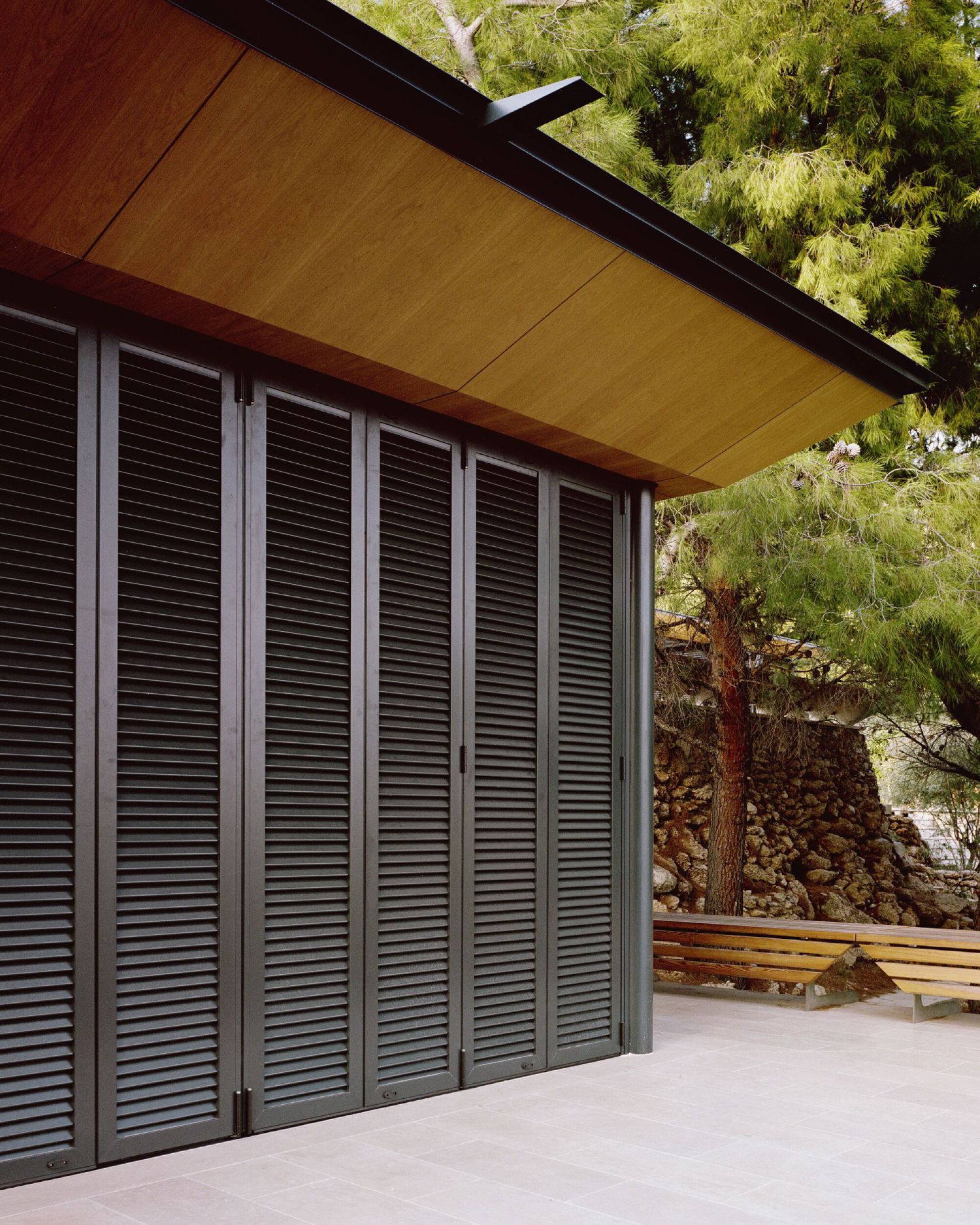 Stakleni paravani su zaštićeni sklopivim metalnim šalukatrama koje, kada se otvore, obezbeđuju maksimalnu vizuelnu propustljivost između unutrašnje i spoljašnje strane. Kada su paravani zatvoreni, zaštita objekta kada se ne koristi je zagarantovana.