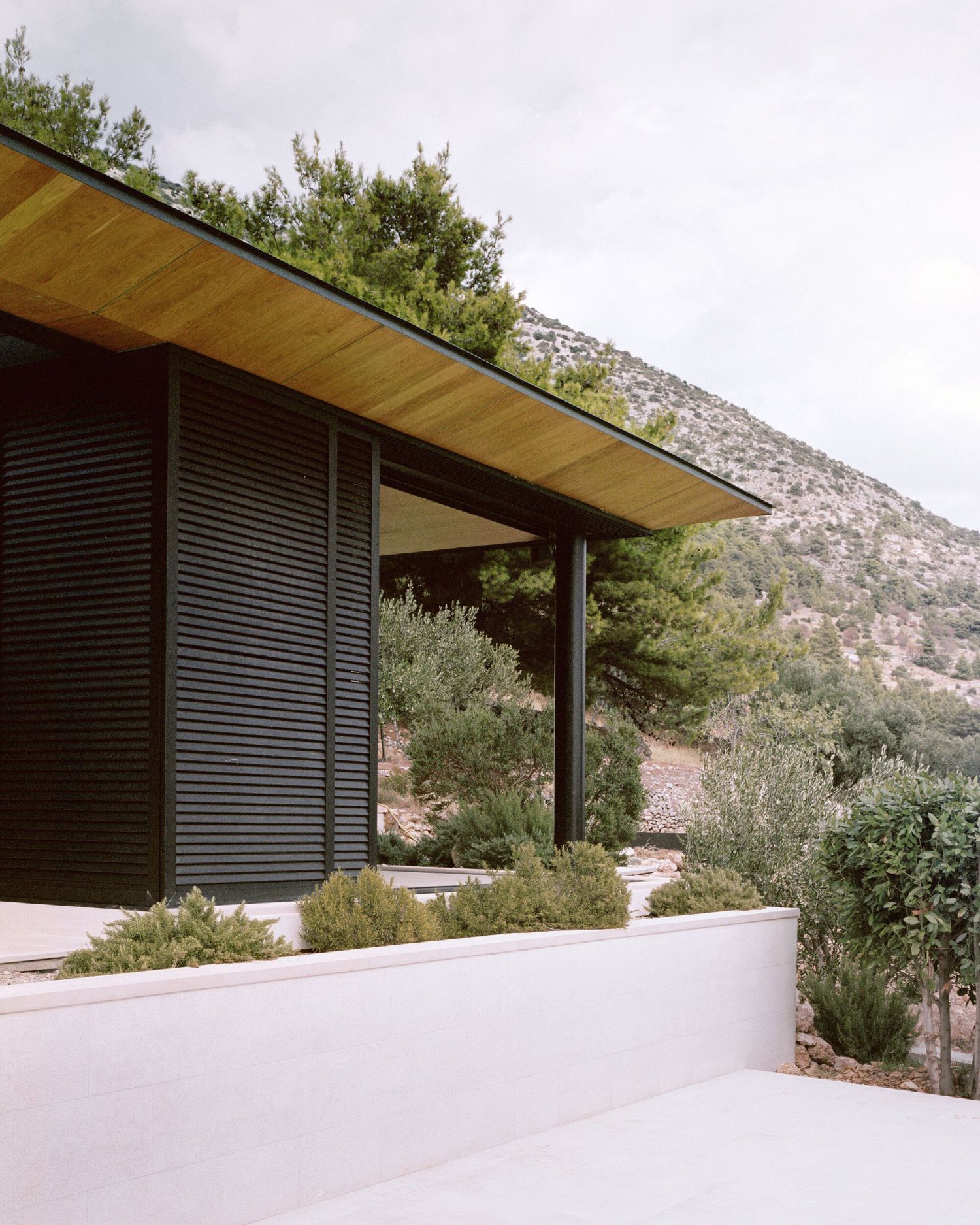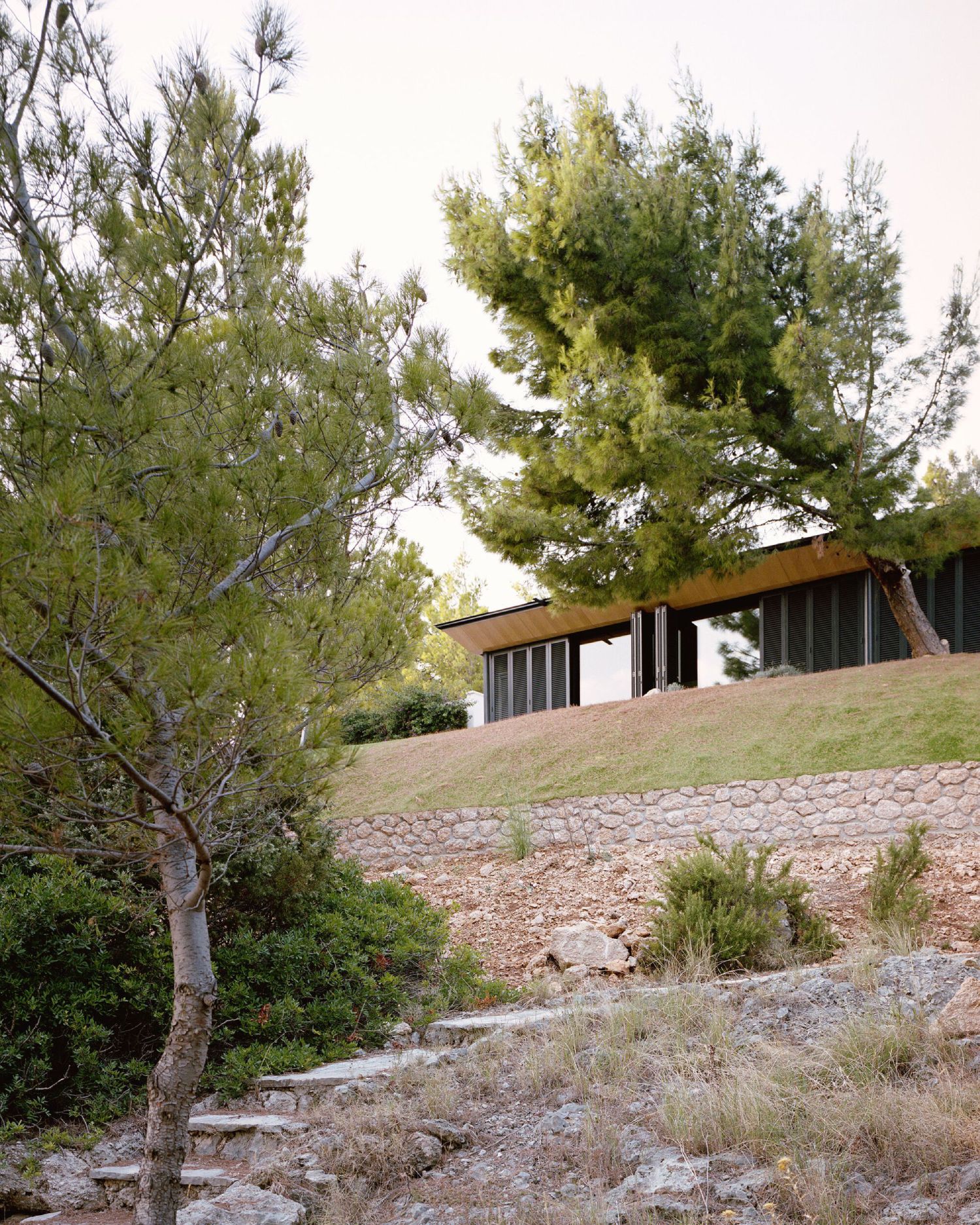Pansion je suptilno uklopljen u pejzaž, a gusta vegetacija borove šume koja se nalazi ispod obuhvata i maskira čitav objekat. Izgrađena ispod nivoa postojeće kuće, zgrada je nevidljiva uprkos svojoj velikoj kvadraturi. Iz unutrašnjosti se može posmatrati prostranstvo horizonta i veličanstveni pejzaž.