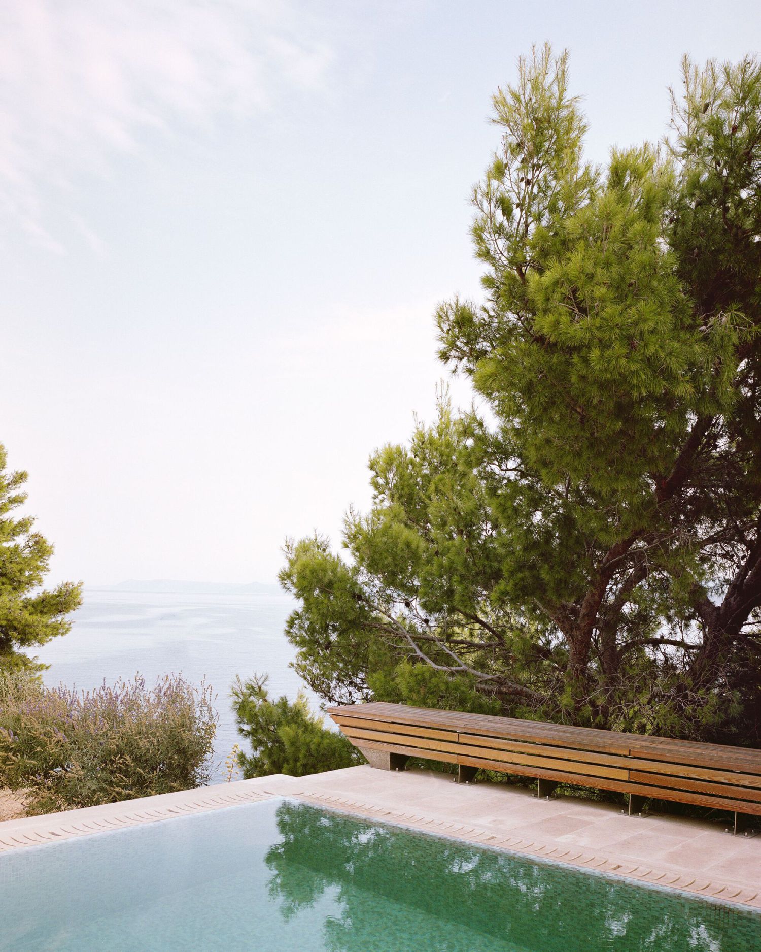 Nova klupa projektovana oko postojećeg bazena može se čitati i kao ograda ili kao ležaljka nakon kupanja.