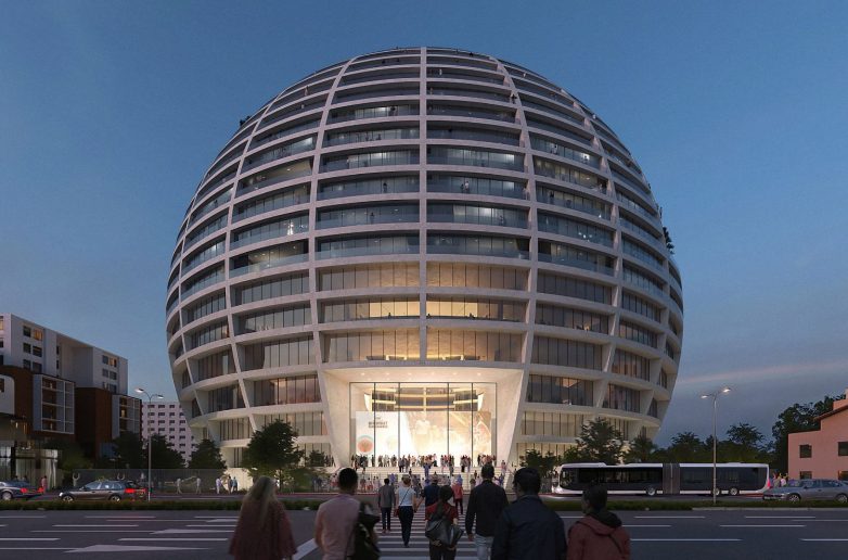 Holandski arhitektonski studio MVRDV predstavio je projekat koji bi mogao da postane novo prepoznatljivo obeležje albanske prestonice — sferni multifunkcionalni kompleks pod nazivom The Grand Ballroom, planiran na lokaciji sadašnje dvorane Asllan Rusi u centru Tirane. Umesto klasične sportske hale, studio predlaže monumentalnu sferu od 20 spratova u kojoj se prepliću arena sa 6.000 mesta, hotel, apartmani i javni sadržaji, objedinjeni u jedinstvenu urbanu celinu.
