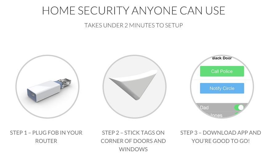 Korner se sastoji od svega dva dela: mrežnog adaptera zvanog Fob koji se priključuje na kućni ruter i ugaonog elementa sa senzorima koji se kače (lepe) na uglove vrata i prozora.