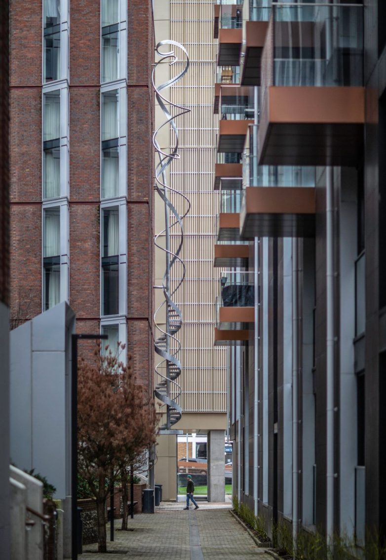 Delom komad infrastrukture, a delom dramatična skulptura, vanjsko stepenište čiji je autor Aleks Činek postepeno se razdvaja u zasebne elemente kako raste u visinu uz zgradu od opeke u engleskom gradu Brajtonu.