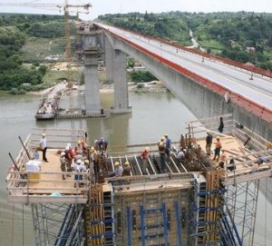 Ministar za infrastrukturu i energetiku Milutin Mrkonjić je zajedno sa predstavnicima medija sipao beton u poslednji kvadratni metar centralnog raspona nad rekom, čime je završena najsloženija faza u izgradnji tog mosta koji će biti dugačak 2.205 metara.