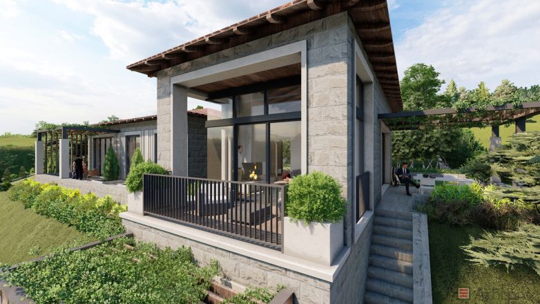 Vinarija sa degustacionom salom predstavlja centralni objekat na parceli iz koga su pruža panoramski pogled ka okolini.