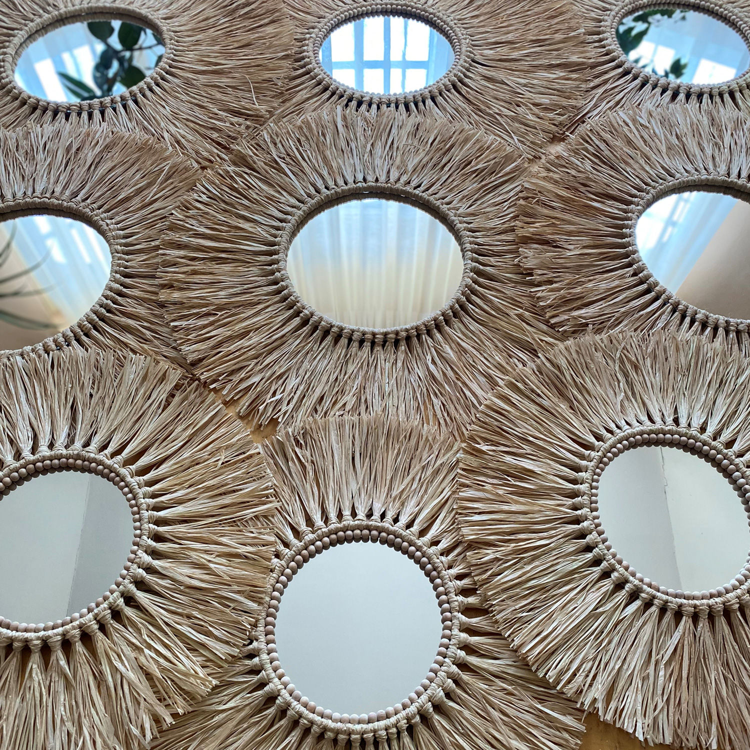 Jo mirror su unikatna, ručno pravljena ogledala od prirodnih materijala, tačnije od rafije. Ogledalo biti u kombinaciji sa drvenim perlicama i u različitim prečnicima: od 50, 60 ili 70 centimetara.