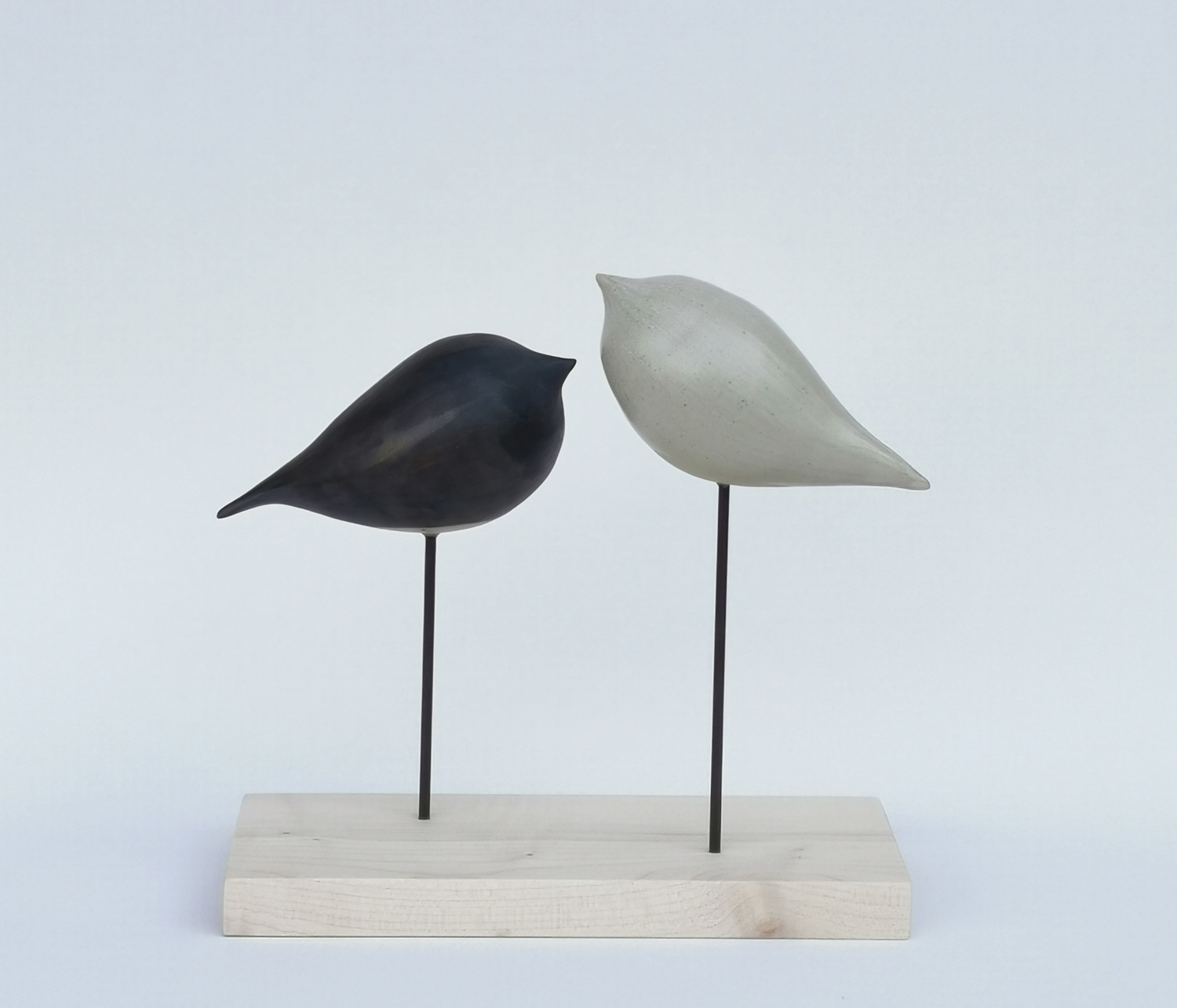 Ana izrađuje unikatne predmete od keramike kao što je i ovaj komad „Couple„. Ptičice su izvedene od keramike kamenina, patiniranog mesinga i drveta. Dimenzije su varijabilne, a ovaj romantičan par je 16 x 25, i visine 27 centimetara.