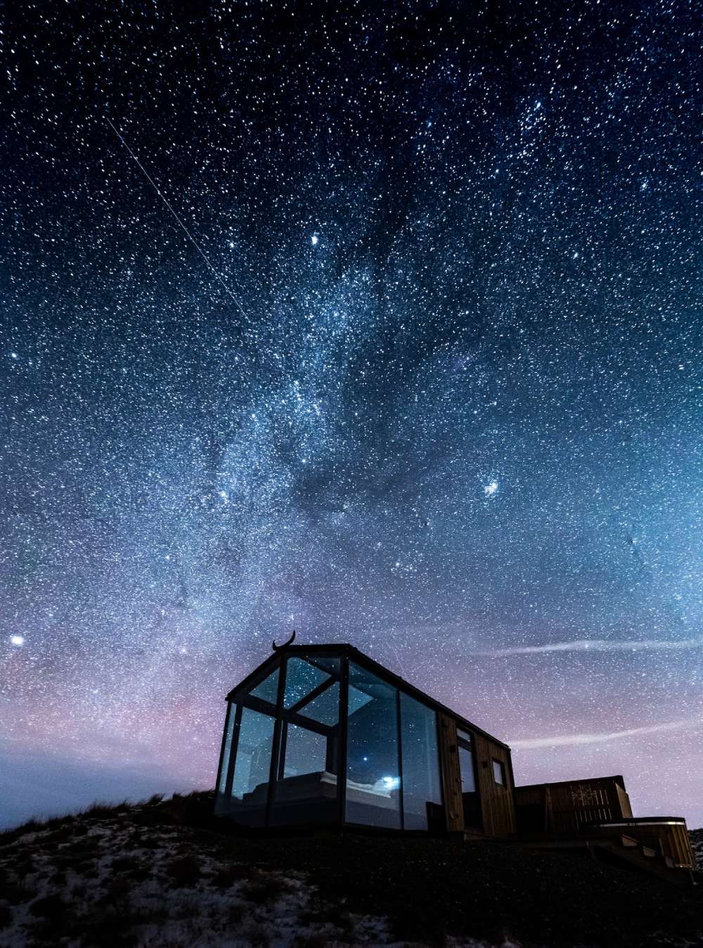 U podnožju aktivnog vulkana Hekla na jugu Islanda, u maloj montažnoj vikendici, možete uživati u spektakularnom pogledu na severnu svetlost i zvezdano nebo.