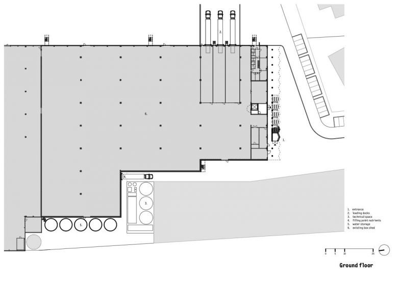 Staklenik površine 9.500 kvadrata izgrađen je na vrhu poljoprivredne pijace REO Veiling, a projekat je poručen od strane REO Veilinga zajedno sa flamanskim institutom za istraživanje poljoprivrede i hortikulture Inargo.