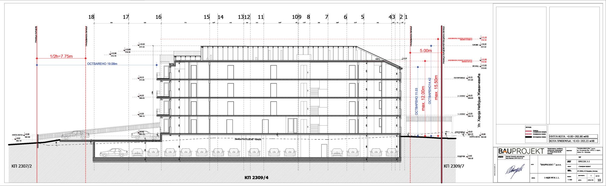 Objekat koncipiran Bauprojektovim idejnim rešenjem je slobodnostojeći stambeni objekat, spratnosti Po+P+2+Pk i ukupne bruto površine od 3.342 kvadratna metra.