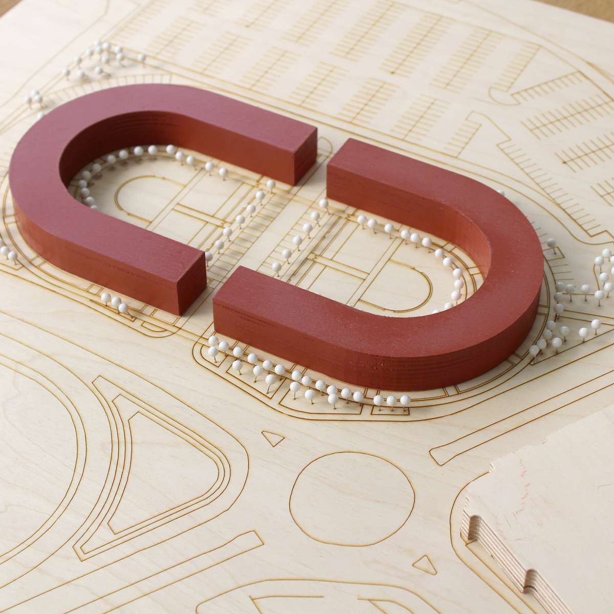 Kompleks od crvene opeke činila bi dva bloka okrenuta jedan prema drugom kako bi zajedno formirali oblik stadiona.