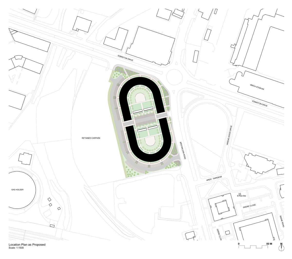 „Svi naši projekti koriste priču lokacije kao ključni pokretač dizajna. Istorijska i trenutna povezanost lokacije za sportom je nešto što želimo da izrazimo u svom dizajnu za ovaj novi projekat. Istorijske mape pokazuju da se na ovom mestu nalazila staza za trke hrtova, za čiju smo formu smatrali da je zanimljiva za primenu u novom projektu. Takođe, ovakav plan se takođe dobro uklapa sa neobičnim oblikom lokacije.“, objasnio je arhitekta Graeme Nicholls.
