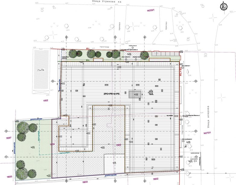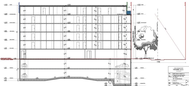 Na građevinskoj parceli se projektuje stambeno-poslovni objekat spratnosti 2Po+Pr+4+Ps, postavljen na građevinske linije i projektovan u okviru zone građenja.