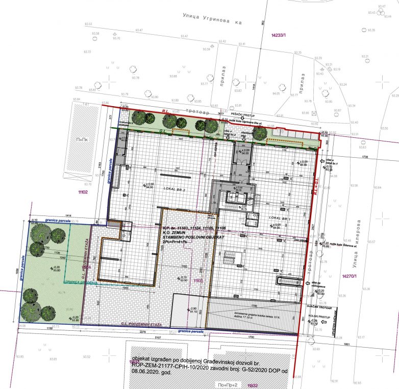 Građevinska parcela na kojij se planira izgradnja stambeno-poslovnog objekta, obuhvata 4 katastarske parcele ukupne površine od 1.681 m2.