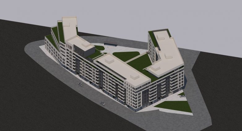 Na novoformiranoj parceli se planira izgradnja stambeno-poslovnog kompleksa koji je predviđen da se sastoji od sedam lamela u vidu otvorenog bloka.